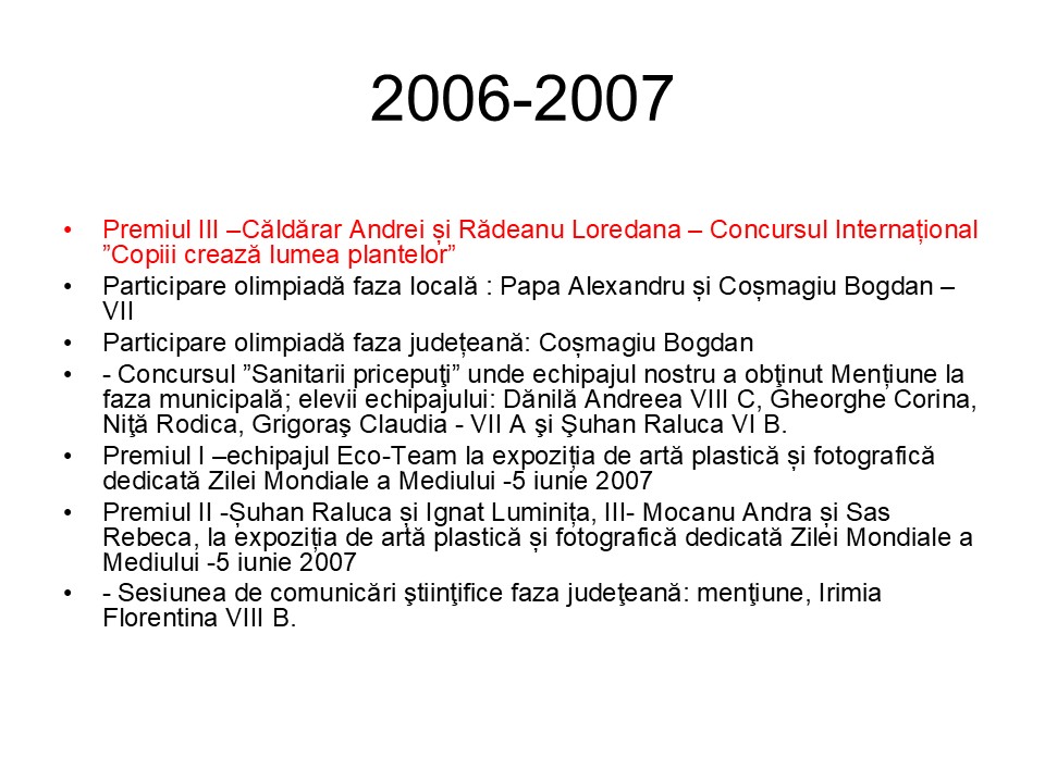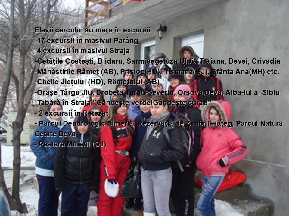 Cercul nostru a fost înfiinţat în octombrie 2005. Într-o zi frumoasă de toamnă, aşa cum încep toate povestirile frumoase, ne-am adunat un grup de elevi şi ne-am hotărât să descoperim splendoarea naturii.