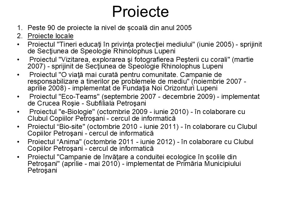 Suntem o organizaţie şcolară al cărei scop este puternic legat de cunoaşterea şi protejarea naturii. Ne propunem să promovăm educaţia ecologică, să vizităm locuri, să cunoaştem peşterile, să ajutăm şi alte suflete vesele la fel ca noi.